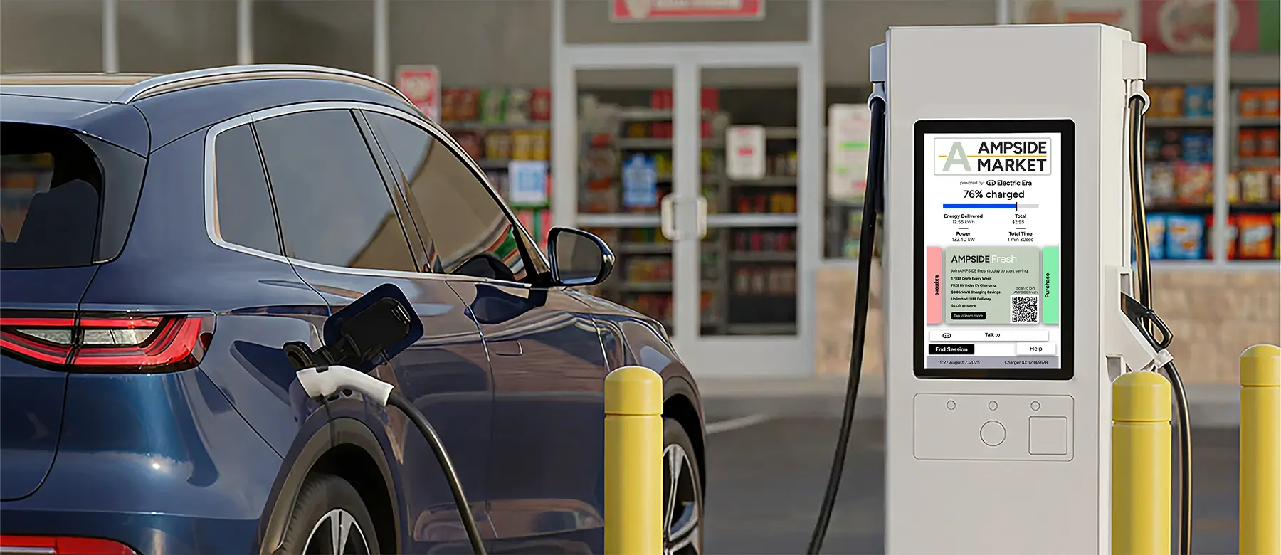 Interactive touchscreen for the ultimate retail-integrated charging experience.