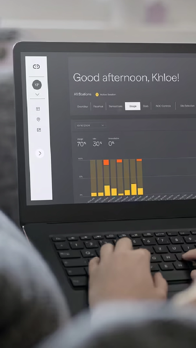 Manage your entire charging footprint from a single pane of glass: Charger status, alerts, usage insights, and retail integrations.