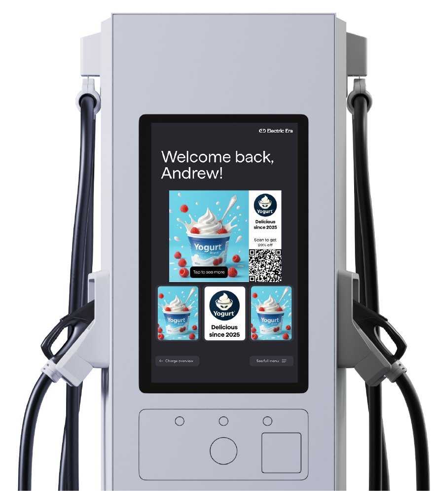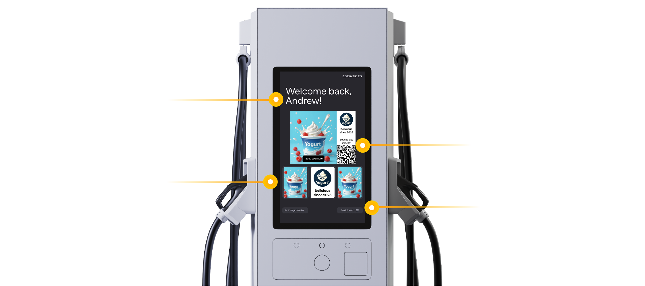 The large, interactive kiosk offers seamless integration with loyalty programs, membership, and retail media networks to turns each charging session into increased LTV.